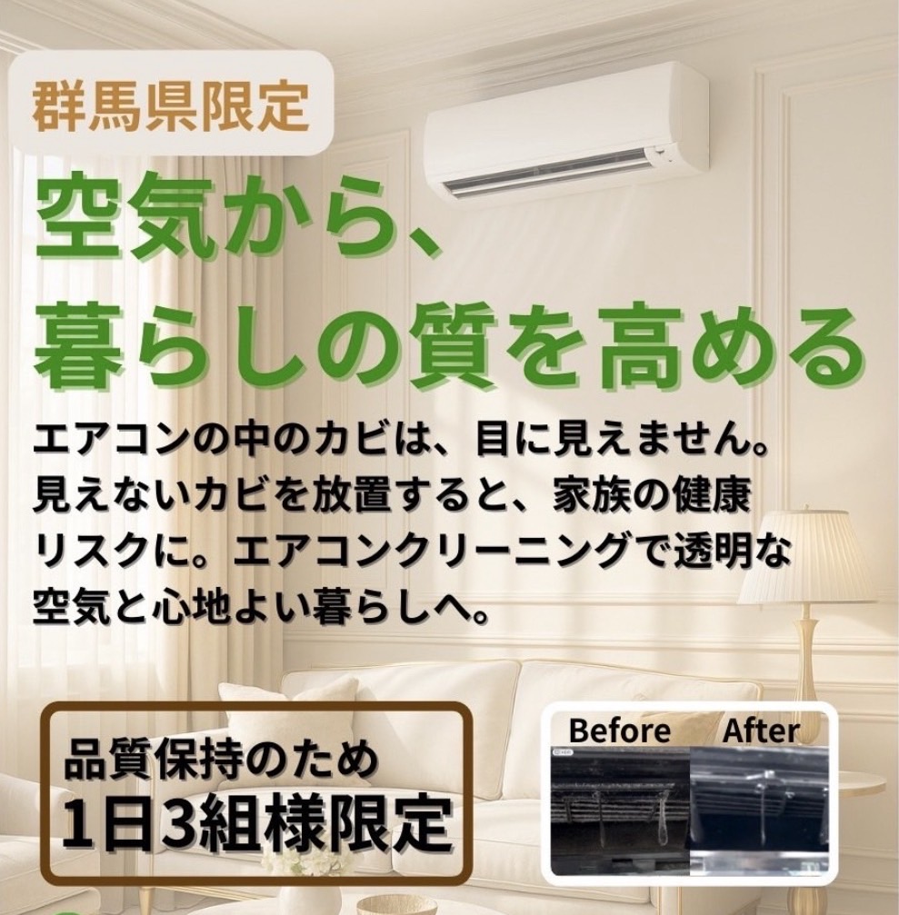 終わった後、エアコンからでるさわやかな風を感じていただけるはずです。